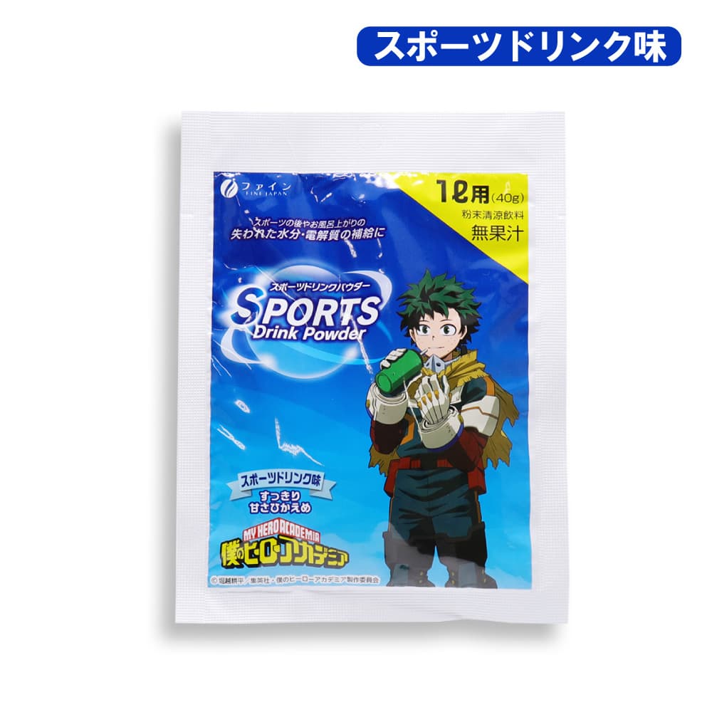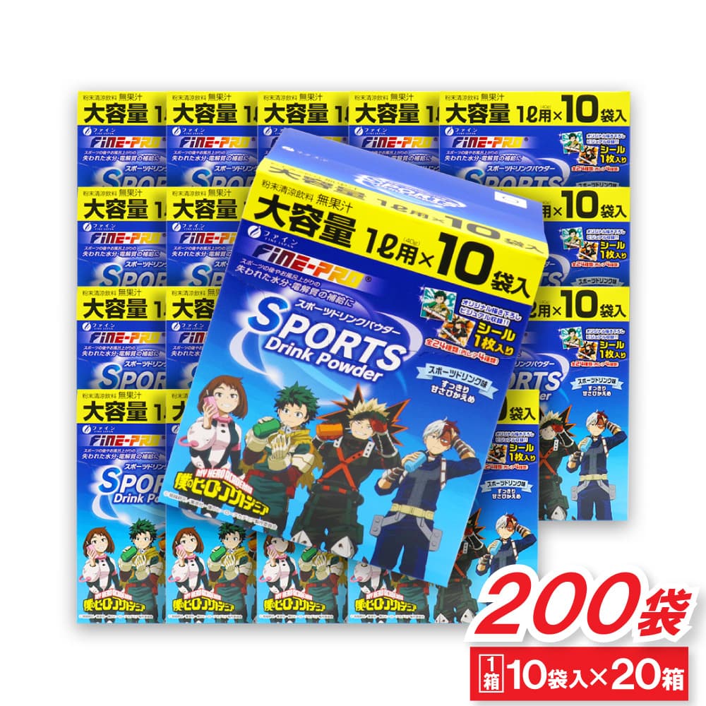 トップ > 健康食品 > 経口補水液 スポーツドリンク > スポーツドリンク 粉末 パウダー 熱中症 対策 大容量 1L用(40g) 10袋入 ×20箱セット 僕のヒーローアカデミア