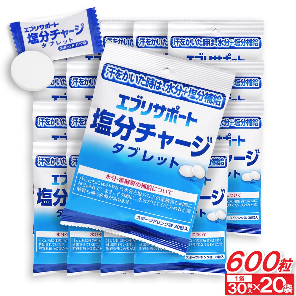トップ > 健康食品 > 塩分チャージ タブレット エブリサポート 塩分補給 スポーツドリンク味 600粒(30粒入×20袋) 塩分タブレット 塩タブレット