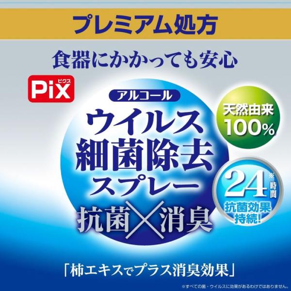 ●必ず「Pix アルコールウイルス細菌除去スプレー」専用のスプレーボトルにつめかえてご使用ください。