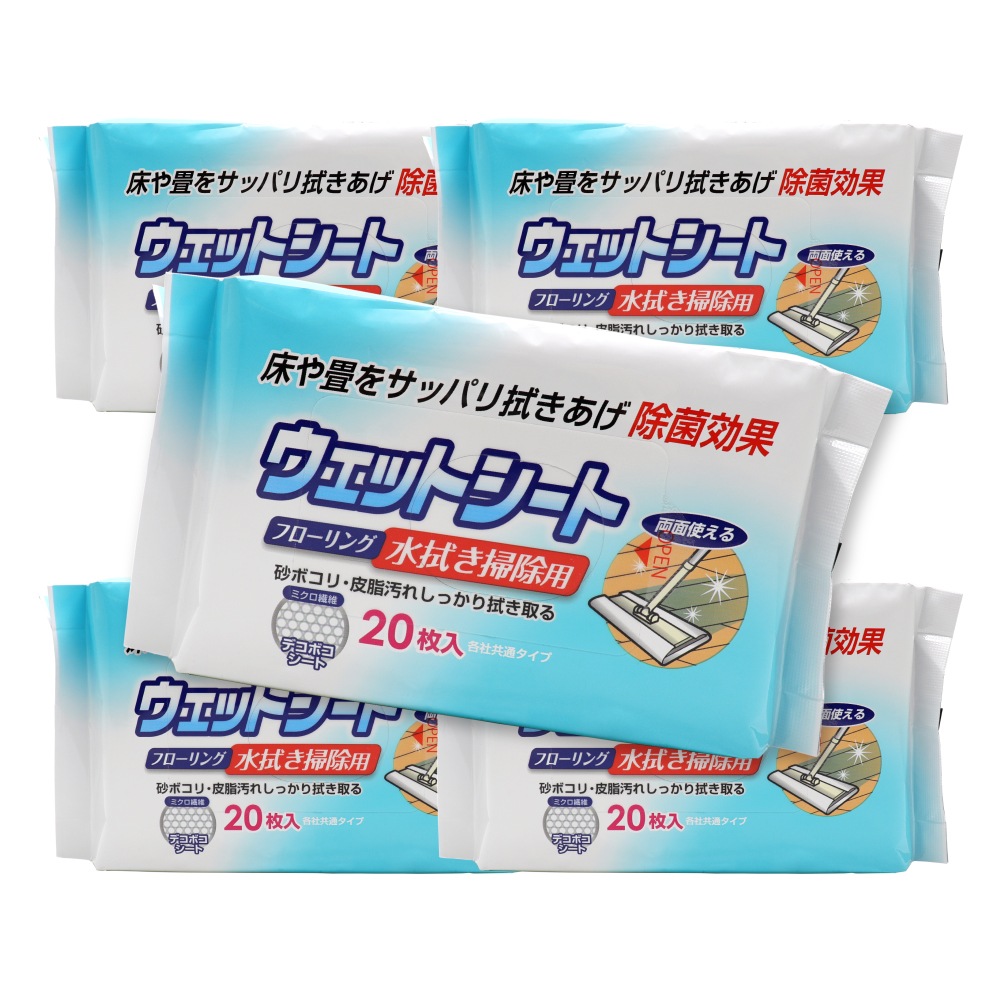 トップ > 日用品 > 掃除・清掃用品 > フローリング ウェットシート 20枚入 ×5個 各社共通タイプ デコボコシート 水拭き掃除用