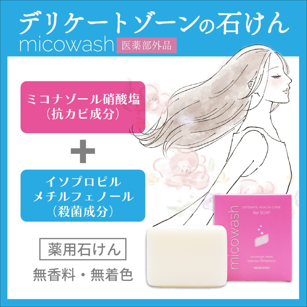 トップ > 売れ筋アイテム > デリケートゾーン 薬用石けん ミコウォッシュ 100g ×24個 日本製 デオドラント 石鹸 臭い 体臭 ニオイ ソープ ミコナゾール硝酸塩 抗真菌