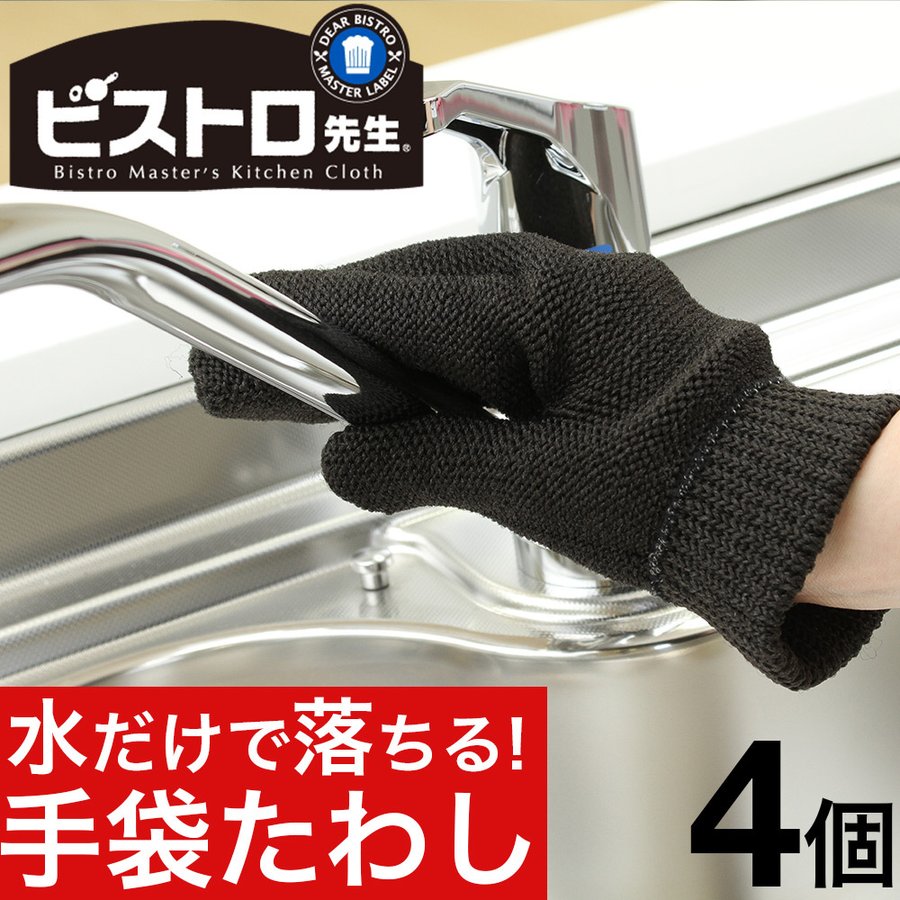 ビストロ先生 手袋たわし 4個 タワシ たわし 掃除用品 台所用品 定形外郵便で発送 送料無料