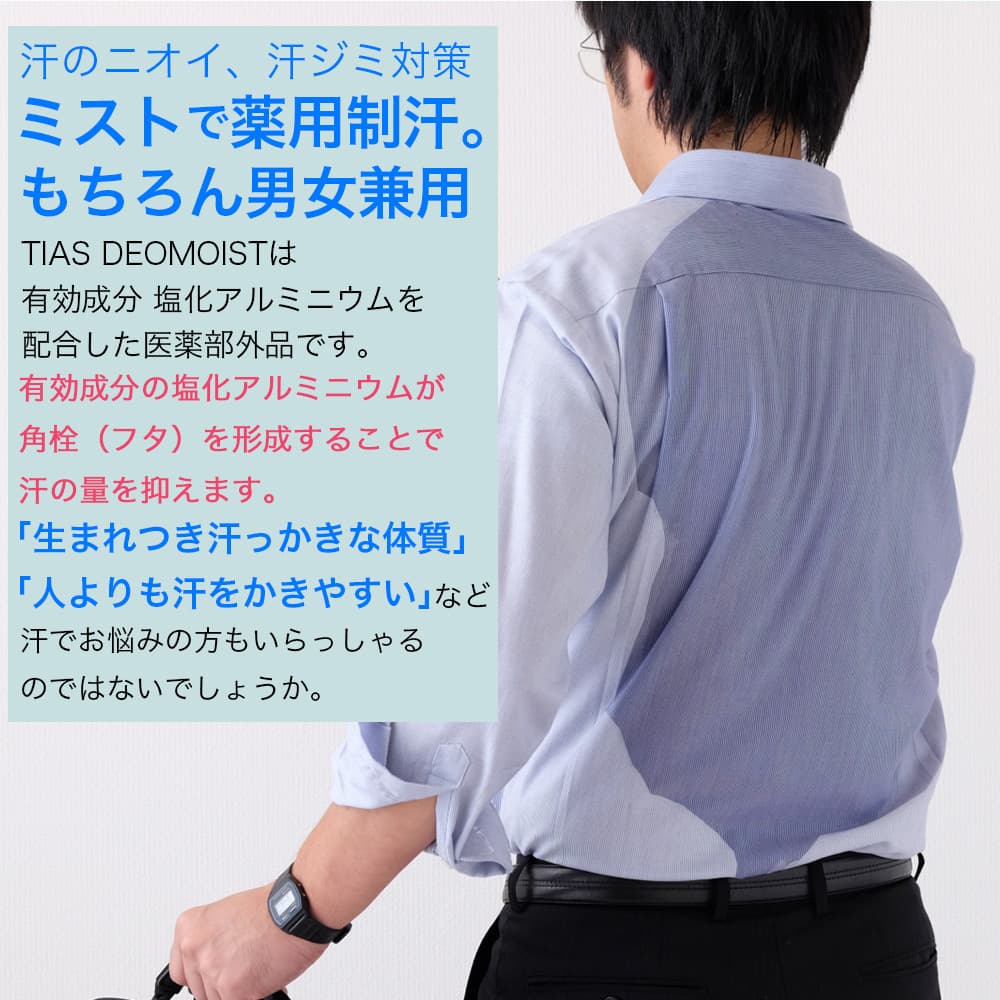トップ > ビューティ > ボディケア > デオドラント > 制汗剤 塩化アルミニウム配合 制汗スプレー 60mL ×3個セット 薬用 デオドラント TIAS デオモイスト 日本製 医薬部外品 ワキガ 手汗 脇汗 対策