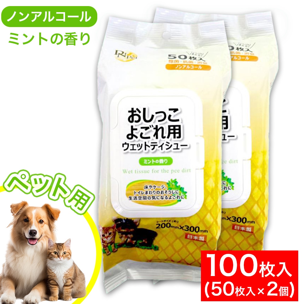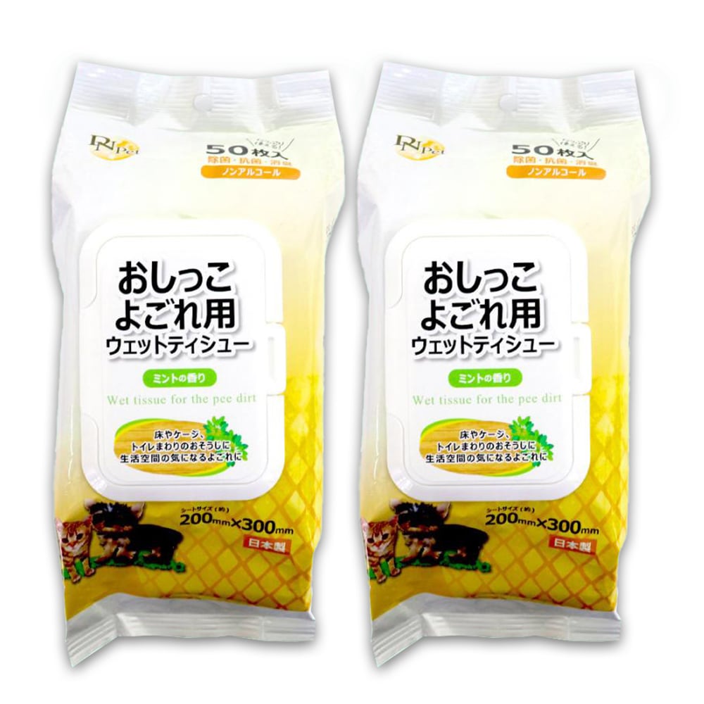 おしっこよごれ用ウェットティシュー 50枚入り 2個 除菌・抗菌・消臭 ペット用 ノンアルコール フタ付き ミントの香り
