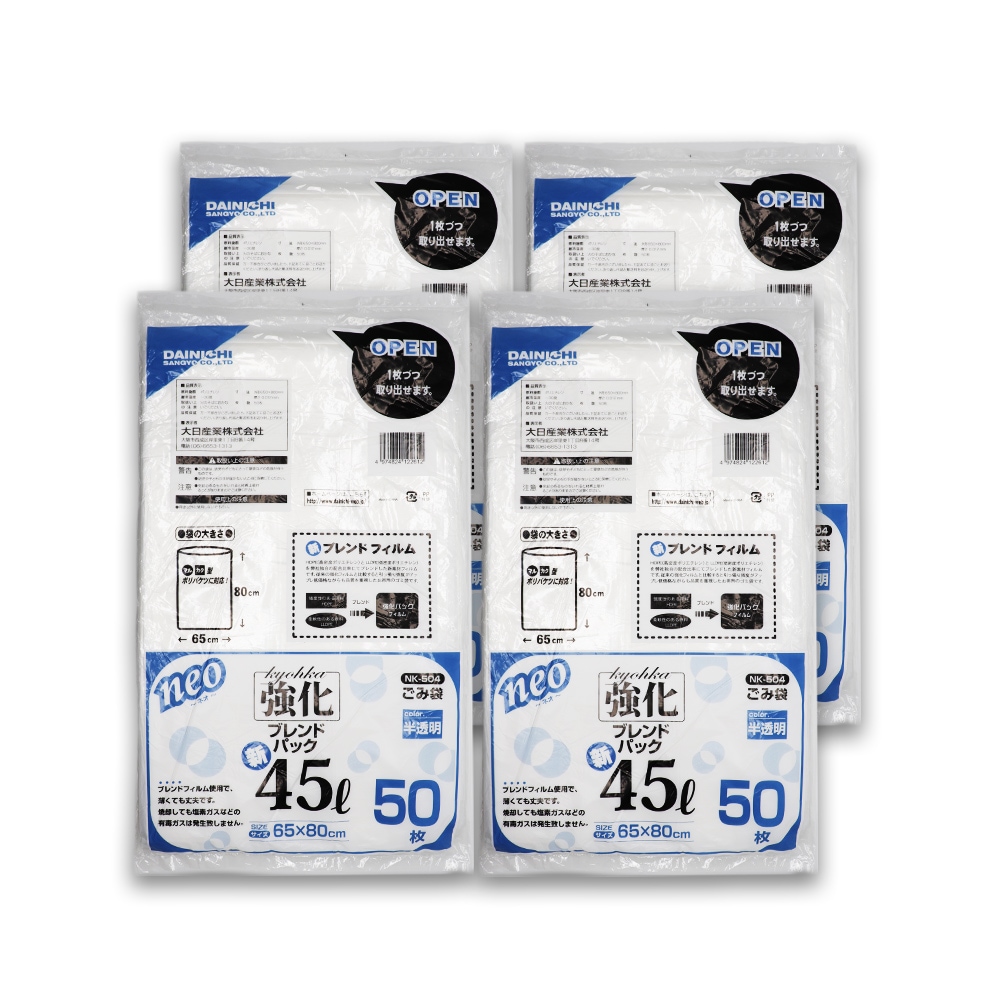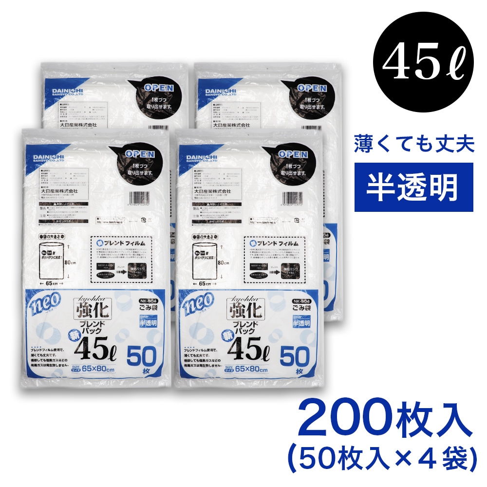 トップ > 日用品 > 掃除・清掃用品 > ゴミ袋 45L 50枚入 ×4袋 半透明 強化 ブレンドパック NK-504 薄手 厚さ:0.012mm ごみ袋 45リットル