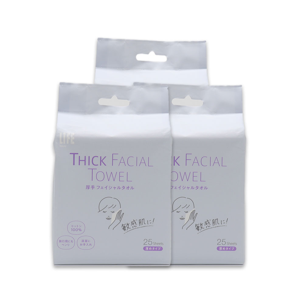 トップ > すべての商品 > 厚手 フェイシャルタオル コットン100% 携帯用 75シート(25シート入×3個) 使い捨て 洗顔 保湿 スキンケア