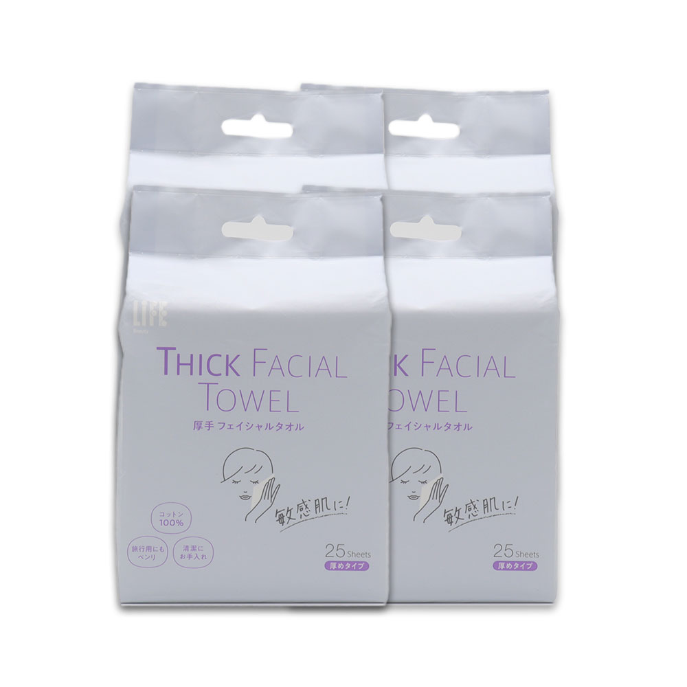 トップ > すべての商品 > 厚手 フェイシャルタオル コットン100% 携帯用 100シート(25シート入×4個) 使い捨て 洗顔 保湿 スキンケア