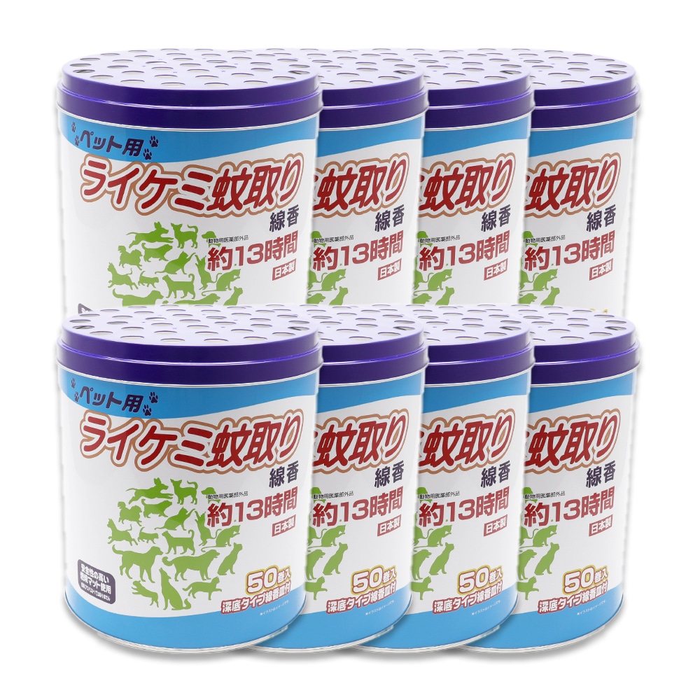 トップ > すべての商品 > 蚊取り線香 ペット用 (犬、猫 動物用) 缶タイプ 13時間 50巻入 ×8個 深底タイプ線香皿付 日本製 動物用医薬部外品