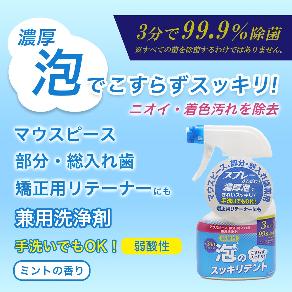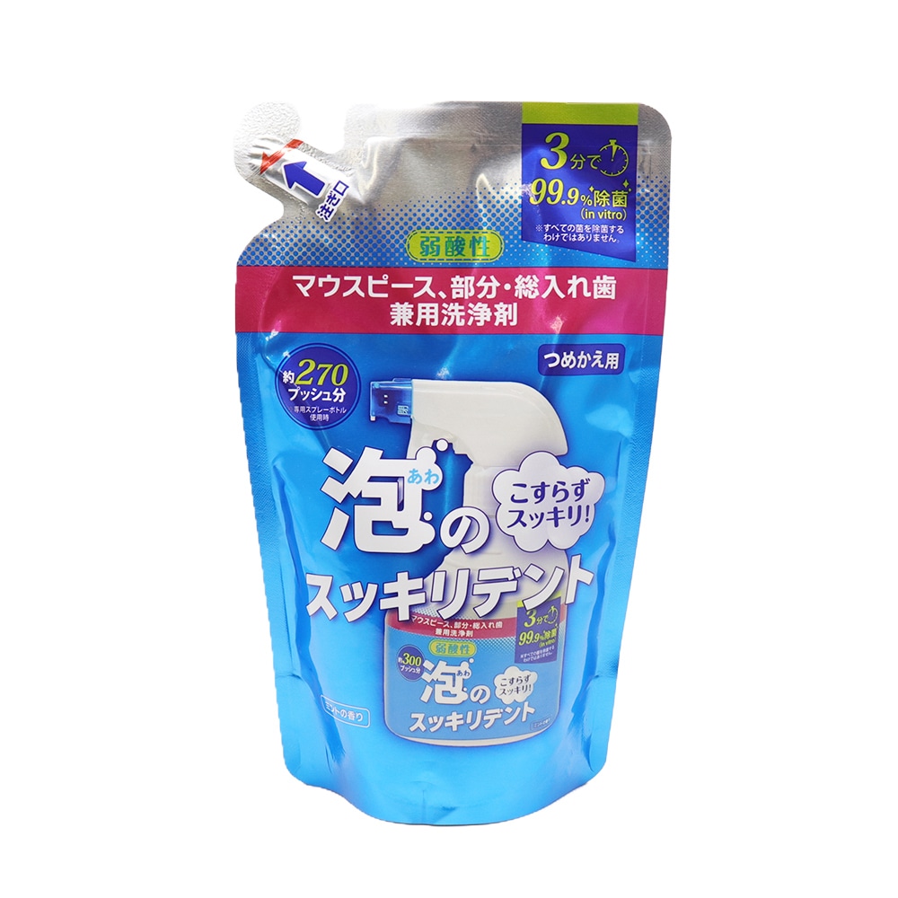 泡のスッキリデント 入れ歯 部分入れ歯 矯正用 リテーナー マウスピース 洗浄剤 泡タイプ スプレー 本体 300ml ×1本 + つめかえ用 270ml ×2袋 セット 日本製