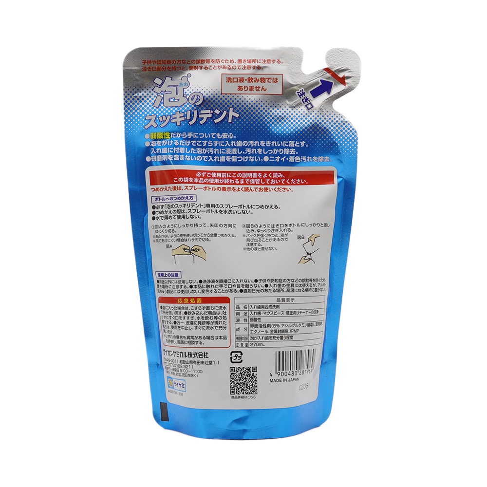 トップ > 日用品 > オーラルケア > 泡のスッキリデント 入れ歯 部分入れ歯 矯正用 リテーナー マウスピース 洗浄剤 泡タイプ スプレー 本体 300ml ×1本 + つめかえ用 270ml ×2袋 セット 日本製