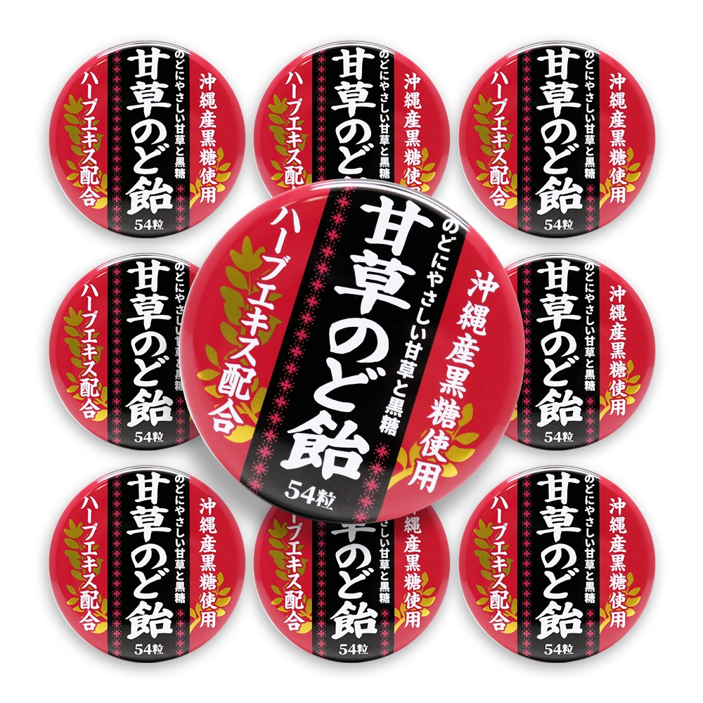 トップ > すべての商品 > 甘草のど飴 缶入 54粒 ×10缶 沖縄産黒糖使用 ハーブエキス配合 日本製