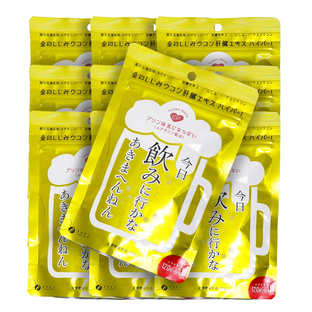 ------------------------------------------------------ 【送料無料】※沖縄・離島など一部地域を除きます ------------------------------------------------------ ファイン FINE JAPAN 金のしじみ ウコン 肝臓エキス ハイパー! 120粒/15〜30日分(1袋あたり) 今日 飲みに行かなあきまへんねん プリン体 気にならない(ルテオリン配合) Golden Blend ●菊の花抽出物(ルテオリン) ●肝臓エキス ●しじみ ●クスリウコン ●栄養機能食品(亜鉛) ●ソフトカプセル ●日本製(Made in Japan) 夜のお付き合いが多い方に健康な豚のレバーを使用した肝臓水解物をはじめ、しじみエキス末、クルクミン、亜鉛やオルニチンを配合しています。 さらにプリン体が気になる方に菊の花抽出物を配合しております。 皆様の健康にお役立てください。 ●亜鉛は、たんぱく質・核酸の代謝に関与して、健康の維持に役立つ栄養素です。 ●亜鉛は、味覚を正常に保つのに必要な栄養素です。 ●亜鉛は、皮膚や粘膜の健康維持を助ける栄養素です。 ●1日当たりの摂取目安量に含まれる機能に関する表示を行っている栄養成分の量が栄養素等表示基準値(18歳以上、基準熱量2200kcal)に占める割合:亜鉛79.5〜159% 食生活は、主食、主菜、副菜を基本に、食事のバランスを。 ●本品は、多量摂取により疾病が治癒したり、より健康が増進するものではありません。1日の摂取目安量を守ってください。 ●亜鉛の摂り過ぎは、銅の吸収を阻害するおそれがありますので、過剰摂取にならないよう注意してください。 ●乳幼児・小児は本品の摂取を避けてください。 ●本品は、特定保健用食品と異なり、消費者庁長官による個別審査を受けたものではありません。 【お召し上がり方】 1日に4〜8粒を目安に水または、ぬるま湯でお召し上がりください。 【栄養成分表示(4〜8粒当たり)】 エネルギー:15.6〜30.3kcal たんぱく質:0.8〜1.6g 脂質:1.2〜2.3g 炭水化物:0.4〜0.8g 食塩相当量:0.017〜0.033g ビタミンB1:1〜2mg ビタミンB2:1.1〜2.2mg ビタミンB6:1〜2mg 亜鉛:7〜14mg 肝臓水解物:300〜600mg しじみエキス末:50〜100mg クルクミン:30〜60mg L-オルニチン:13〜26mg 菊の花抽出物:100〜200mg 【名称】 豚肝臓エキス含有加工食品 【原材料名】 サフラワー油(国内製造)、ゼラチン、豚肝臓水解物、菊の花抽出物(菊の花エキス、澱粉分解物)、亜鉛酵母、しじみエキス末、ウコン抽出物、L-オルニチン塩酸塩、クスリウコン末/グリセリン、ミツロウ、グリセリン脂肪酸エステル、酸化防止剤(ビタミンE)、カカオ色素、ビタミンB1、ビタミンB6、ビタミンB2、(一部に豚肉・ゼラチンを含む) 【内容量】1袋あたり 75.6g(630mg×120粒) 【保存方法】 高温多湿や直射日光を避け、涼しい所に保存してください。 【ご注意】 ・体質に合わないと思われる場合はお召し上がりの量を減らすか、またはお止めください。 ・妊娠・授乳中の方、治療中の方は、お召し上がり前に医師にご相談ください。 ・乳幼児の手の届かない所に保存してください。 ・開封後はチャックをしっかり閉め、なるべくお早めにお召し上がりください。 ・高温下に放置すると、カプセルの付着や変形を生じることがありますので、涼しい所に保存してください。 ・製造ロットにより色やにおいなどに多少の違いが生じる場合がありますが、品質上、問題はありません。 【製造者】 株式会社ファイン 大阪市東淀川区下新庄5丁目7番8号 ●製品についてのご質問は下記までご連絡ください。 お客様相談室 月〜金(祝日を除く)AM9:00〜PM6:00 0120-056-356 ISO9001認証の自社工場で製造したものです。 株式会社ファインは産学連携に賛同し、国立大学構内にファインバイオサイエンス研究所(FBRC)を設け、新素材の開発や解析を積極的に進めています。