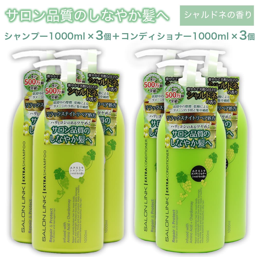 サロンリンク シャルドネの香り エクストラ シャンプー 1000ml ×3個 + コンディショナー1000ml ×3個 セット サロン品質 リラックスナイトリペア処方 日本製