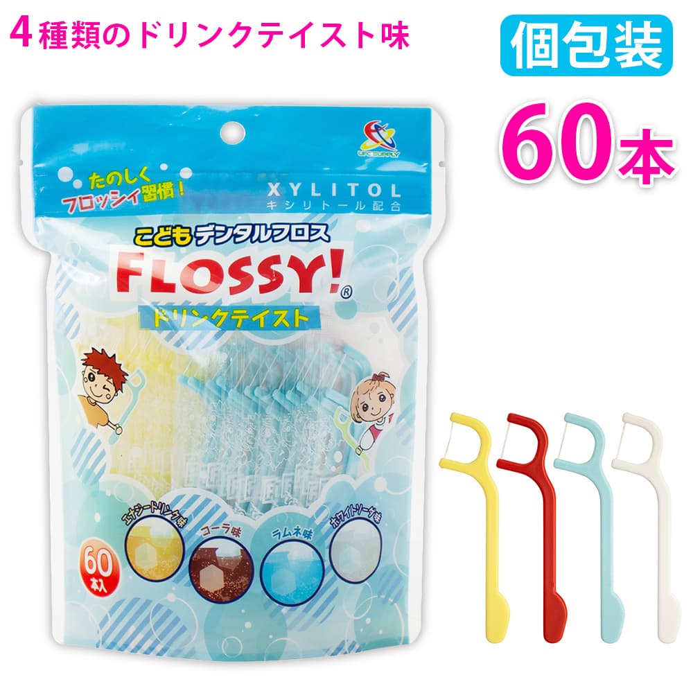 トップ > ベビー&キッズ・マタニティ > こども用オーラルケア > フロッシィ こどもデンタルフロス ドリンクテイスト 60本入 フロッシー キシリトール配合 個包装パック フロス 子供用