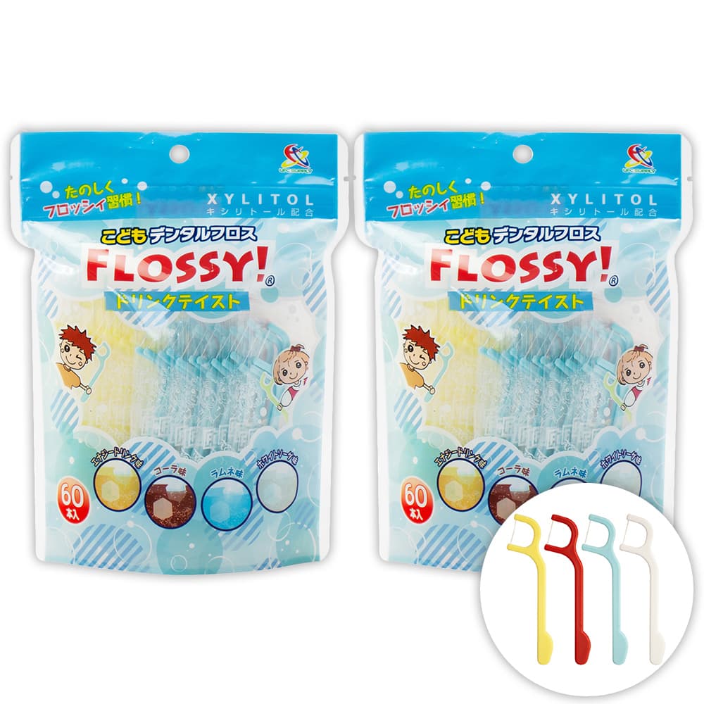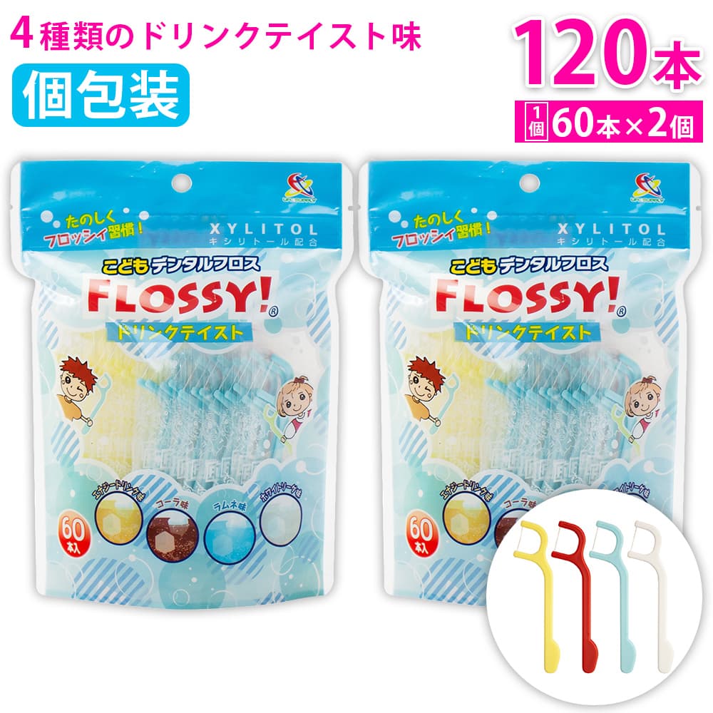 トップ > ベビー&キッズ・マタニティ > こども用オーラルケア > フロッシィ こどもデンタルフロス ドリンクテイスト 60本入 ×2個 フロッシー キシリトール配合 個包装パック フロス 子供用