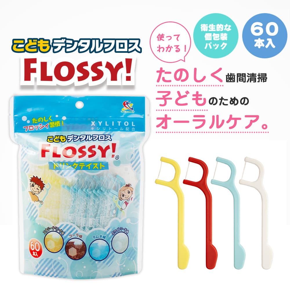 トップ > ベビー&キッズ・マタニティ > こども用オーラルケア > フロッシィ こどもデンタルフロス ドリンクテイスト 60本入 ×10個 フロッシー キシリトール配合 個包装パック フロス 子供用
