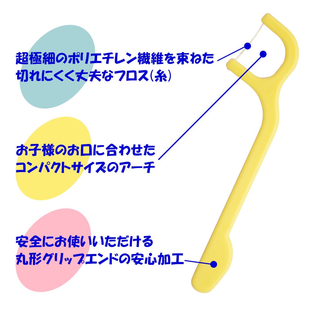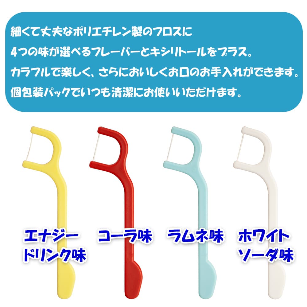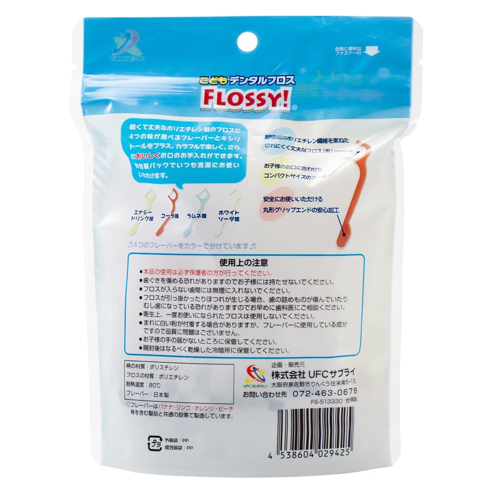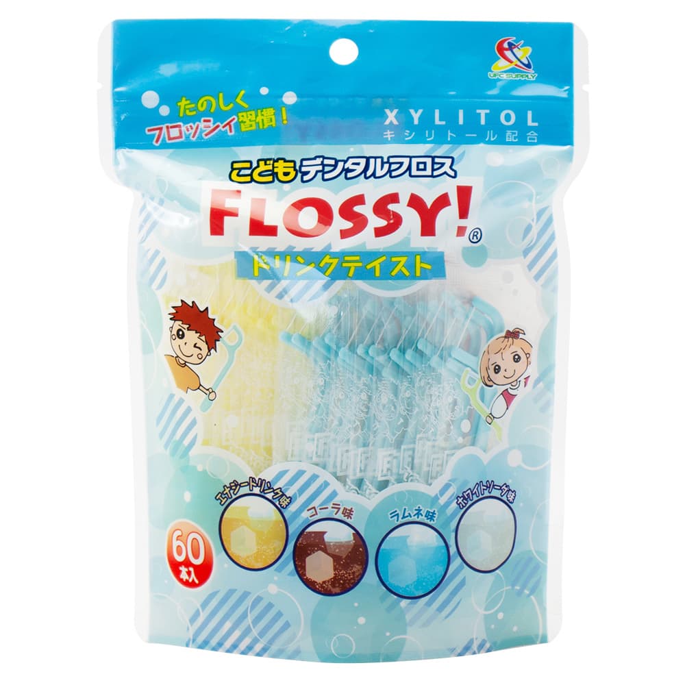 ------------------------------------------------------ 【送料無料】※沖縄・離島など一部地域を除きます ------------------------------------------------------ UFC SUPPLY UFCサプライ こどもデンタルフロス FLOSSY! ドリンクテイスト たのしくフロッシィ習慣! ●XYLITOL キシリトール配合 ●いつも清潔!個包装パック ●保管に便利なファスナー付 細くて丈夫なポリエチレン製のフロスに4つの味が選べるフレーバーとキシリトールをプラス。 カラフルで楽しく、さらにおいしくお口のお手入れができます。 個包装パックでいつも清潔にお使いいただけます。 エナジードリンク味 コーラ味 ラムネ味 ホワイトソーダ味 4つのフレーバーをカラーで分けています 超極細のポリエチレン繊維を束ねた切れにくく丈夫なフロス(糸) お子様のお口に合わせたコンパクトサイズのアーチ 安全にお使いいただける丸形グリップエンドの安心加工 【内容量】1個あたり 60本入 【使用上の注意】 ●本品の使用は必ず保護者の方が行ってください。 ●歯ぐきを痛める恐れがありますのでお子様には持たせないでください。 ●フロスが入らない歯間には無理に入れないでください。 ●フロスが引っ掛かったりほつれが生じる場合、歯の詰めものが傷んでいたり、むし歯になっている恐れがありますのでお早めに歯科医にご相談ください。 ●衛生上、一度お使いになられたフロスは使用しないでください。 ●まれに白い粉が付着する場合がありますが、フレーバーに使用している成分ですので品質に問題はございません。 ●お子様の手の届かないところに保管してください。 ●開封後はなるべく乾燥した冷暗所に保管してください。 【柄の材質】 ポリスチレン 【フロスの材質】 ポリエチレン 【耐熱温度】 80℃ 【フレーバー】 日本製 ◎フレーバーはバナナ・リンゴ・オレンジ・ピーチ等を含む製品と共通の設備で製造しています。 ●FS-513330 ●台湾製 【企画・販売元】 株式会社UFCサプライ 大阪府泉佐野市りんくう往来南5-15 お問い合わせ先:072-463-0678